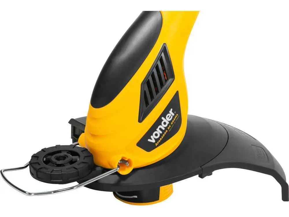 Leve, prático e funcional, possui punho auxiliar ajustável, corpo extensível, motor elétrico com dois rolamentos, trava que não deixa a extensão elétrica desconectar, carretel com saída dupla para o fio, sistema de avanço manual e corte automático do fio de nylon. Possui ainda, roda auxiliar de apoio para cortar as bordas da grama e cabeça com possibilidade de rotação, podendo ser posicionada na vertical ou horizontal, proporcionando maior facilidade nos acabamentos, além de limitador de distância que evita que o fio de nylon danifique o tronco ou o caule das plantas.